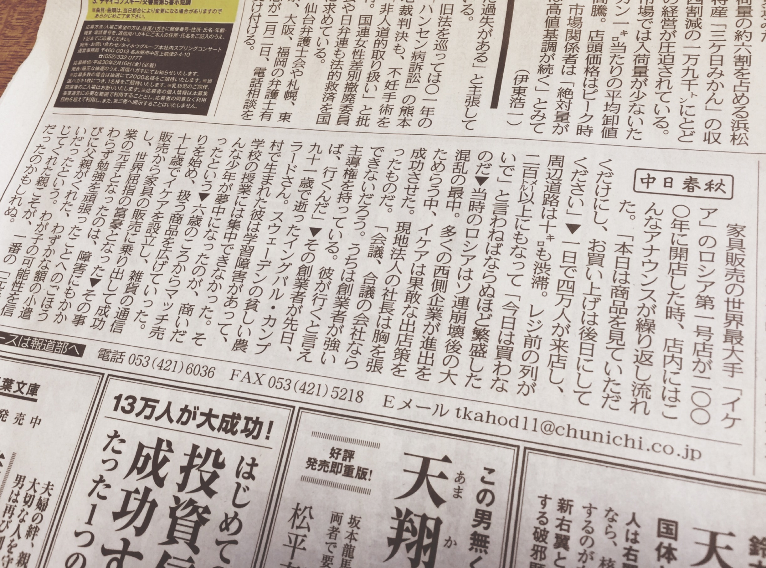 さて、本日の天声人語ならぬ中日春秋(中日新聞のコラム)は、私の背中を強く押してくれました。