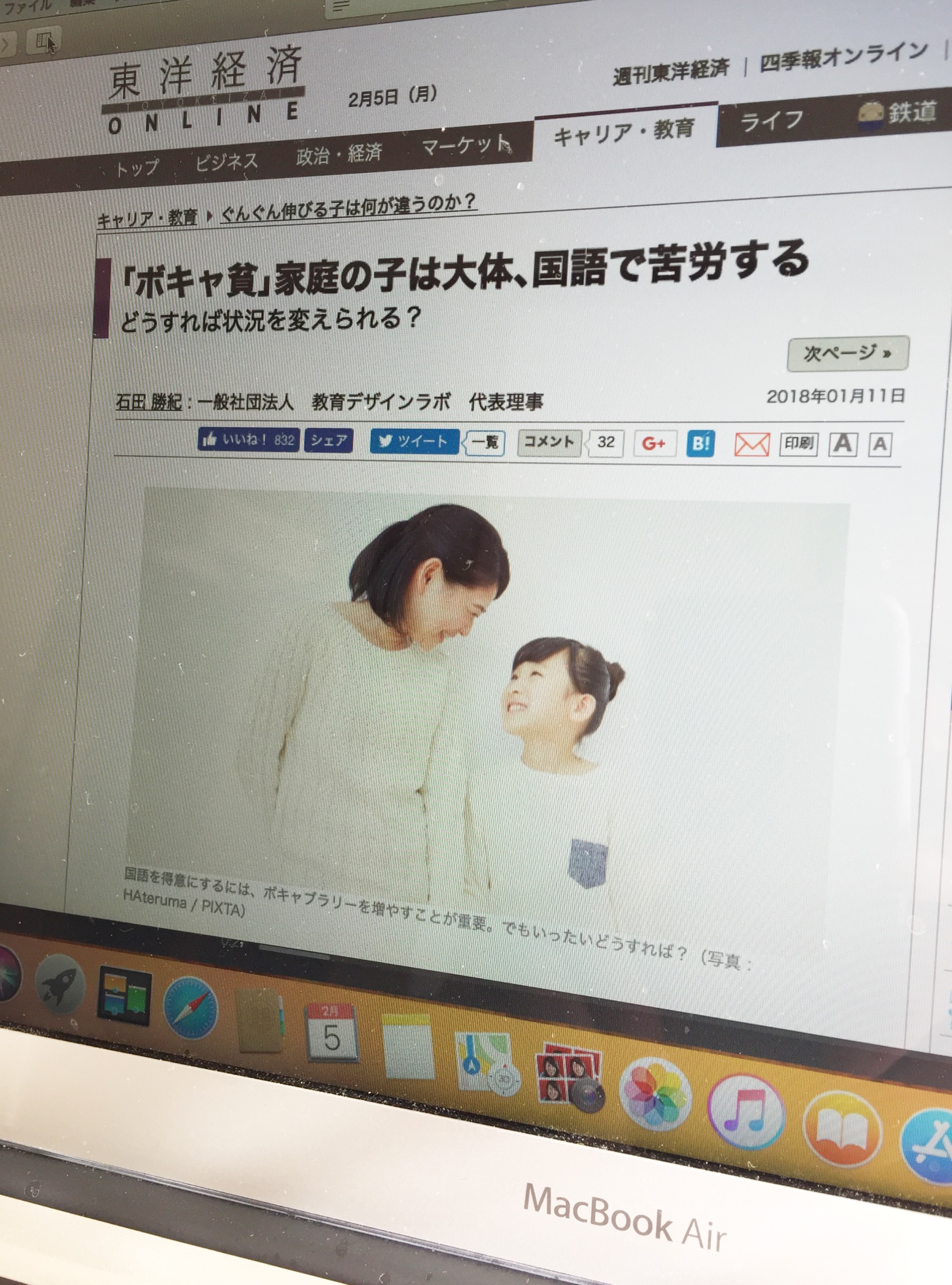 「ボキャ貧」家庭の子は大体、国語で苦労する(東洋経済ONLINE 2018/1/11)http://toyokeizai.net/articles/-/204047