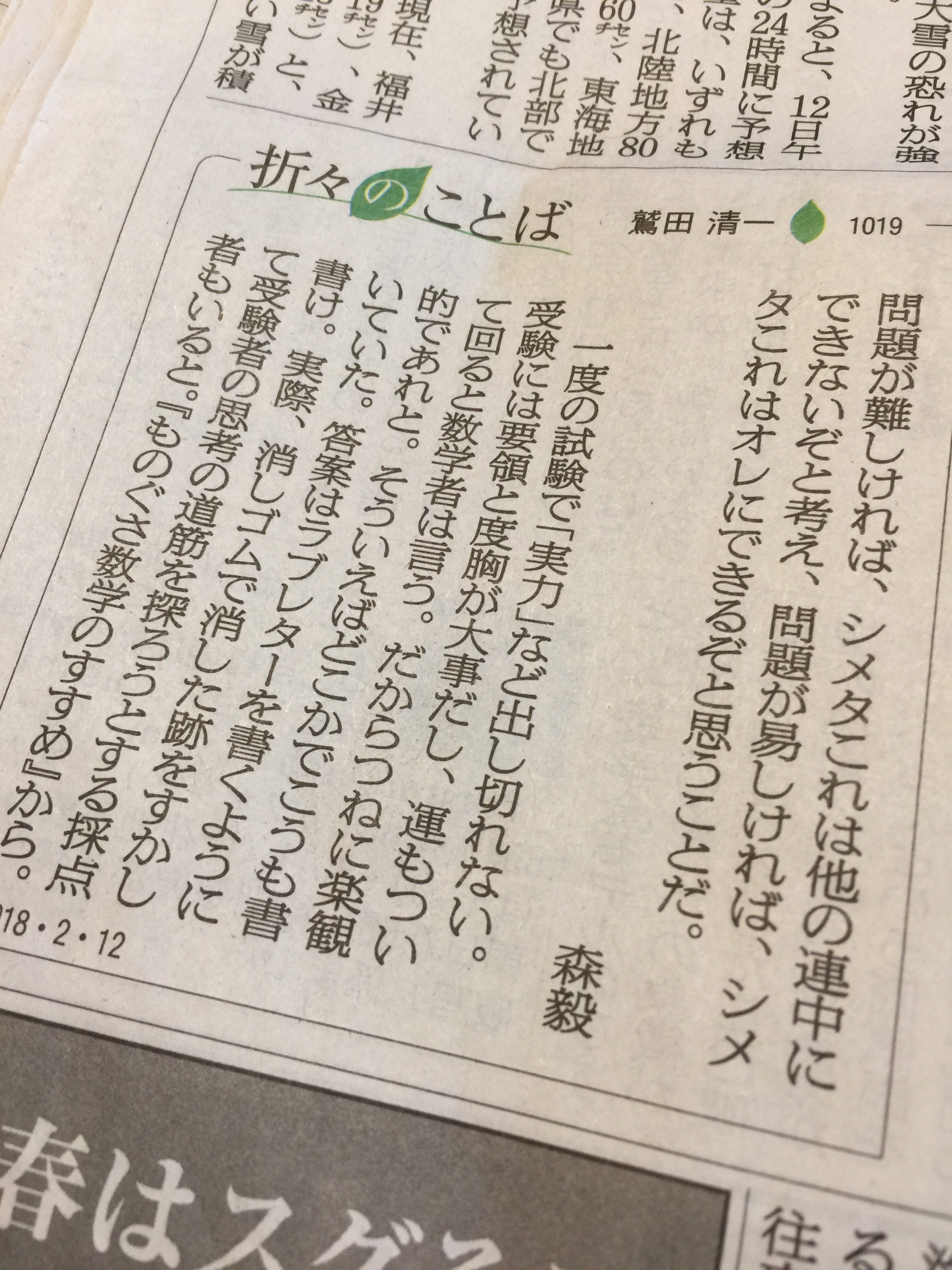 朝日新聞(2/12)の連載「折々のことば」が、受験生に向けられたものだったので紹介します。