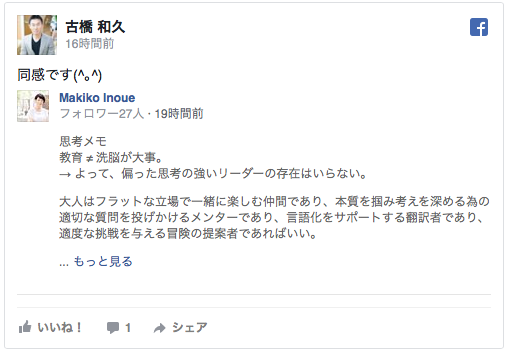 日本と世界の教育を感じてきた友人がFBに投稿したメッセージ。