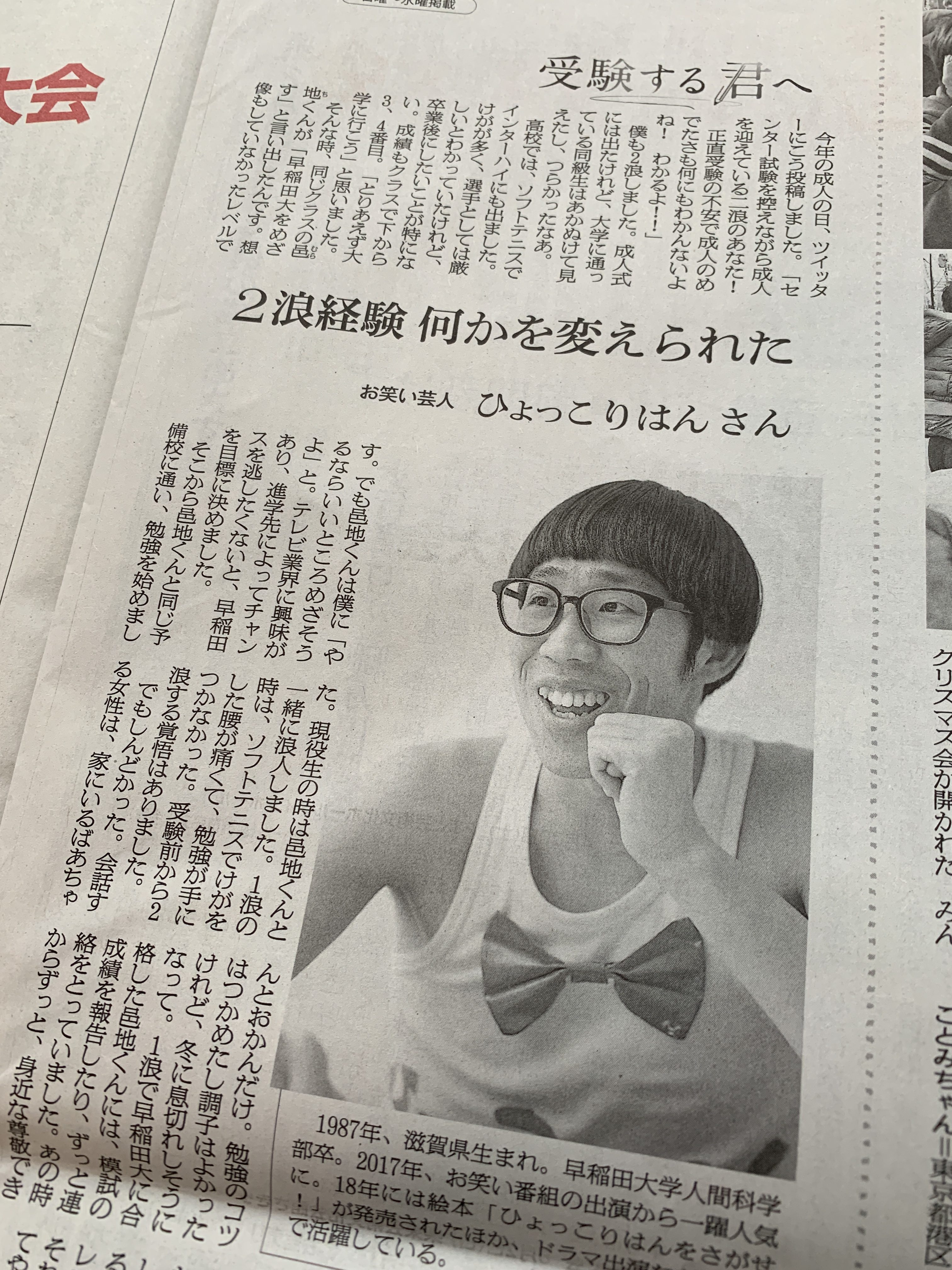 わかる、わかる。受験体験を振り返る”ひょっこりはん”さんのお話に、新聞記事を読みながらウンウンと頷いていました。挑戦をする受験に失敗はありません。