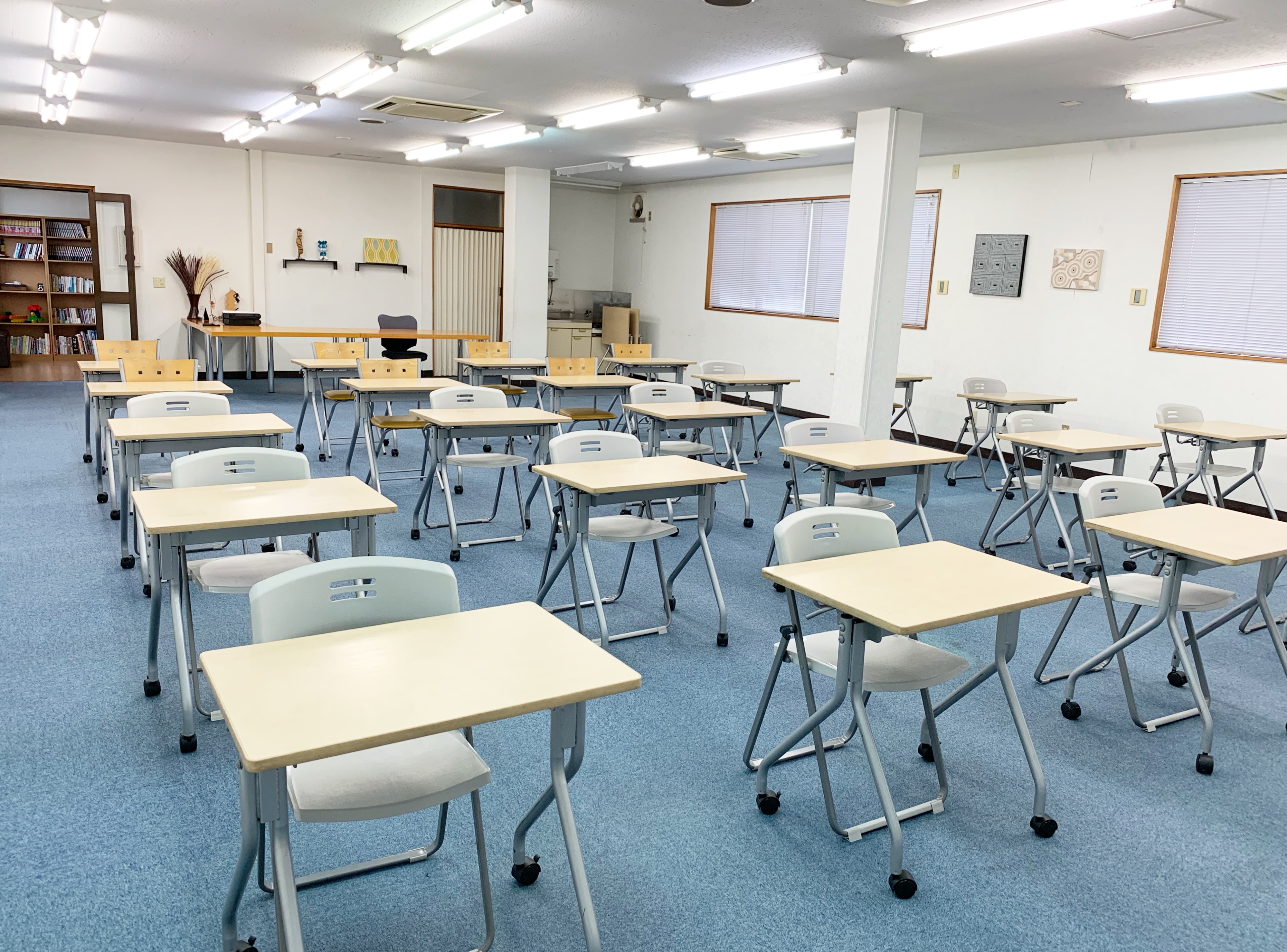 勉強会の準備が整いました。整然と並ぶ机に緊迫感が漲っていますよね。