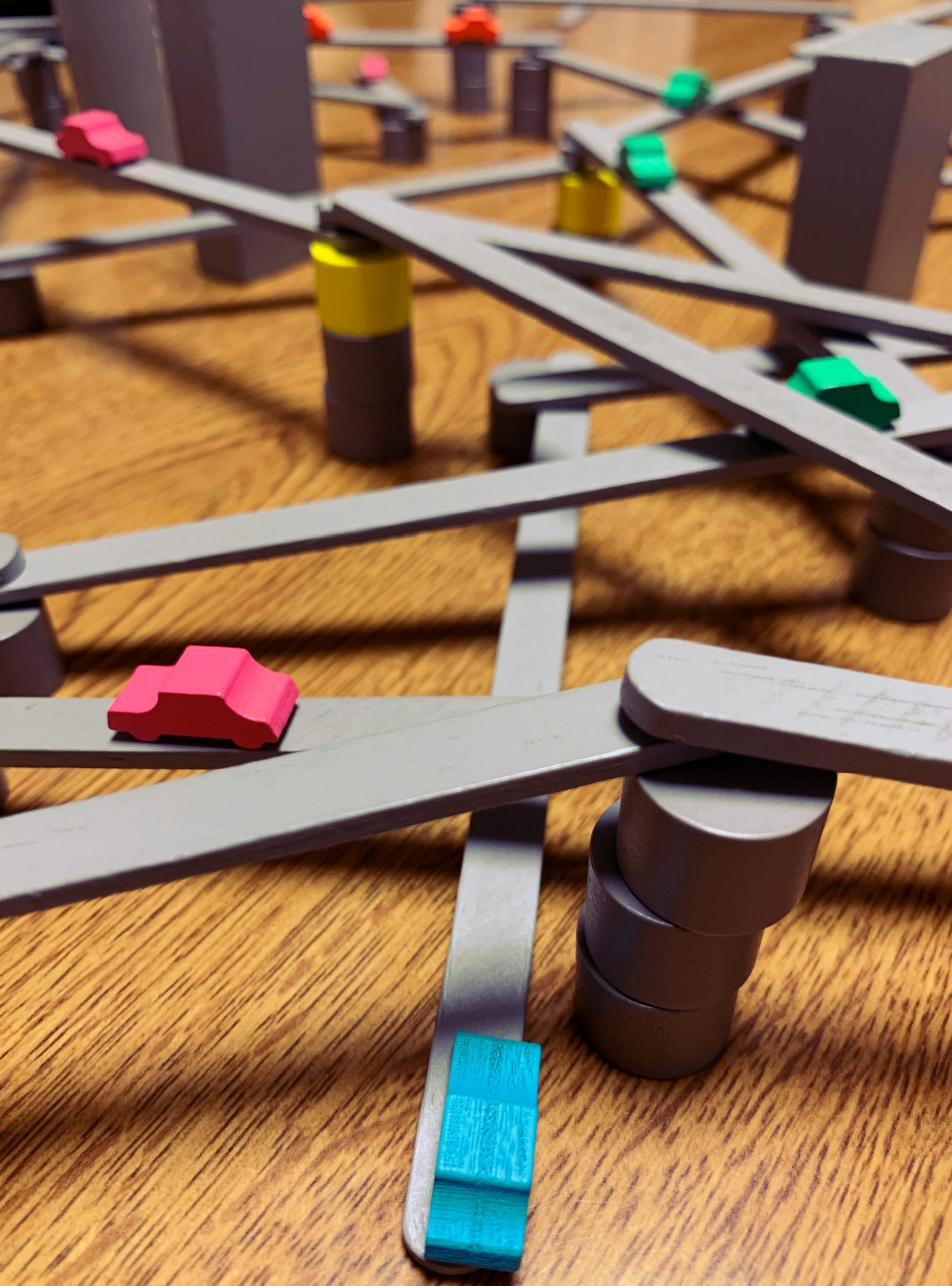 この中でもっとも厄介なことが「手先の器用さ」。自分がハイウェイを作る時に、相手が作ったハイウェイを壊すとペナルティが課せられるからです。お互いのハイウェイが交錯しているところに橋を作るため、壊しやしないかと指先が震えてハラハラドキドキ。緊張感も難度もMAXです。
