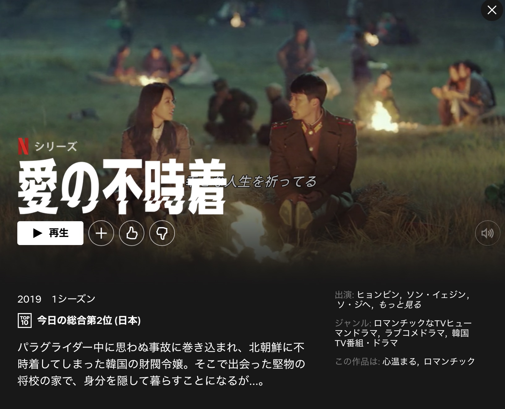 NETFLIXの韓流ドラマ「愛の不時着」が今話題です。
