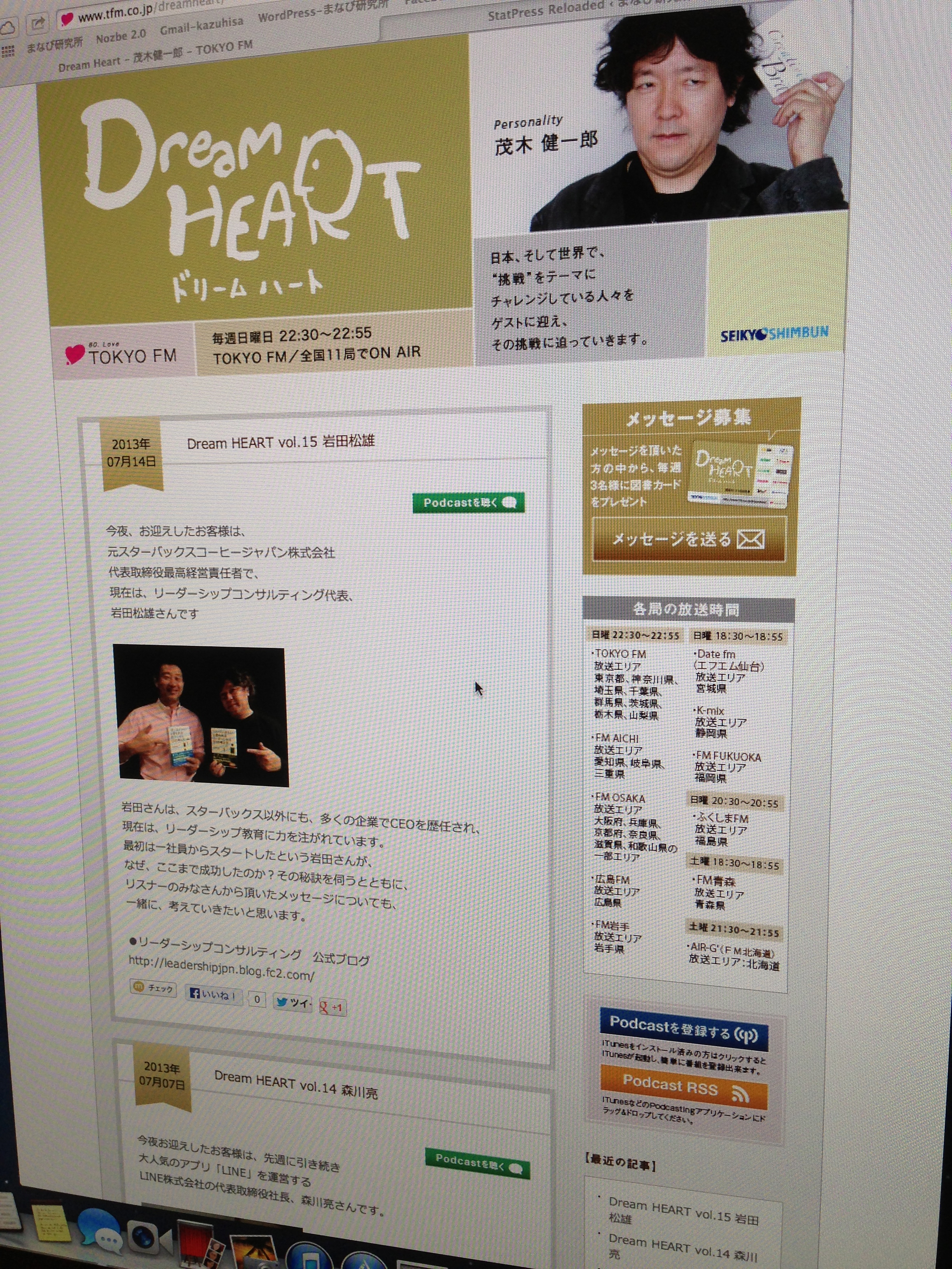 茂木健一郎氏がパーソナリティーを務めるラジオ番組”ドリームハート”を聞いていて気付いたことがあります。