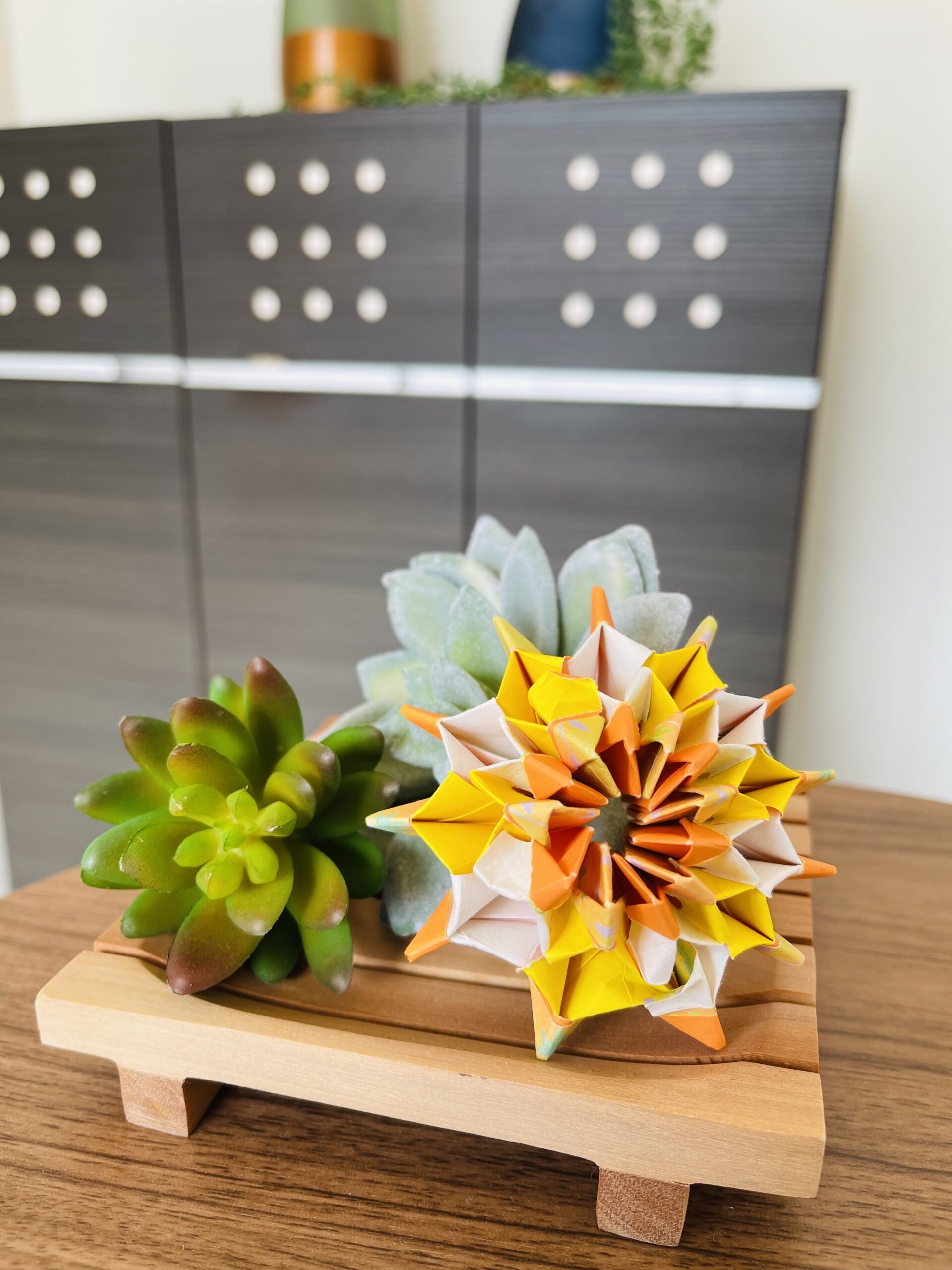 小5の女の子が作ってくれた万華鏡。なんと12枚もの折り紙を使って作られているそうです。