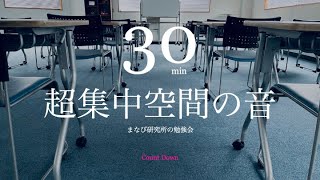 この音を「超集中空間の音 30mm カウントアップ」と名付けてYoutubeに公開してみました。勉強会の音を30分間体験できる動画です。これを聴けば、家に居ながら勉強会の雰囲気を再現できます。家庭学習のツールとしてお役立ていただけると嬉しいです。