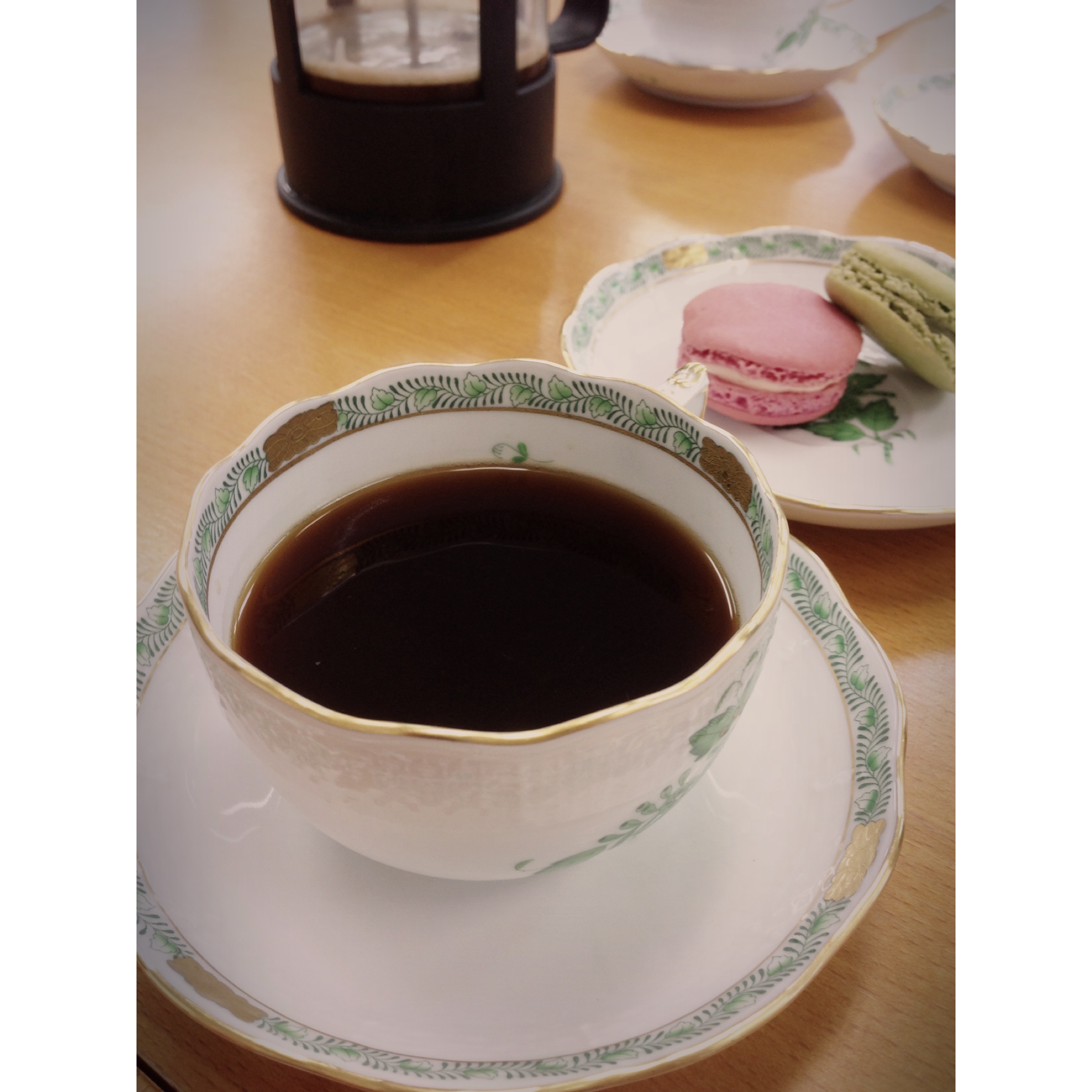 ちょっと紹介させていただくと、コーヒー豆は、高級で上品と言われる「パナマゲイシャ」。聞いたところによると、なんと、一般のコーヒー専門店のおよそ8倍もの価格。カップは前回のブログでもお伝えした伝統あるヨーロピアン・カップの「ヘレンド」。お菓子はフランスデザート界のスーパースター「ピエール・エルメ」。この組み合わせに、味はもちろんのこと、優雅なデザイン、馥郁とした香りに、それはもう充実した時間でした。