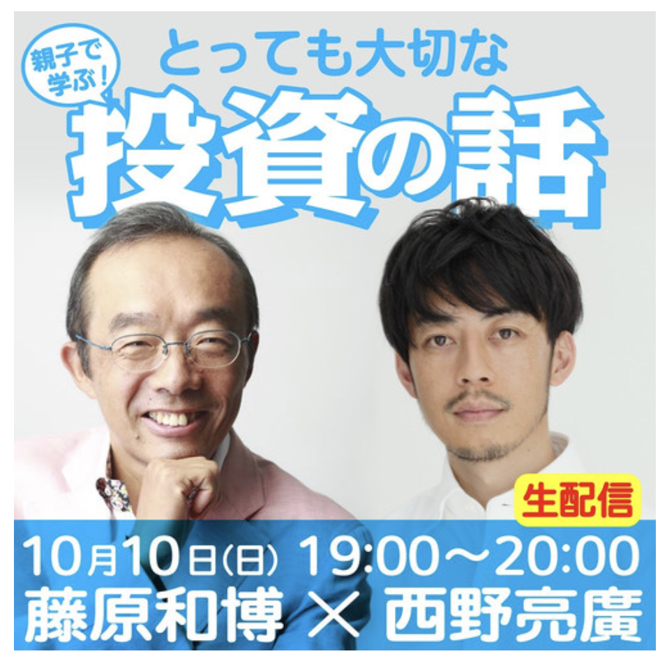 藤原和博さんが先生となり、キンコン西野と参加者の皆様が、投資の基礎について勉強するZOOM勉強会を配信用のFacebookグループで生配信します。