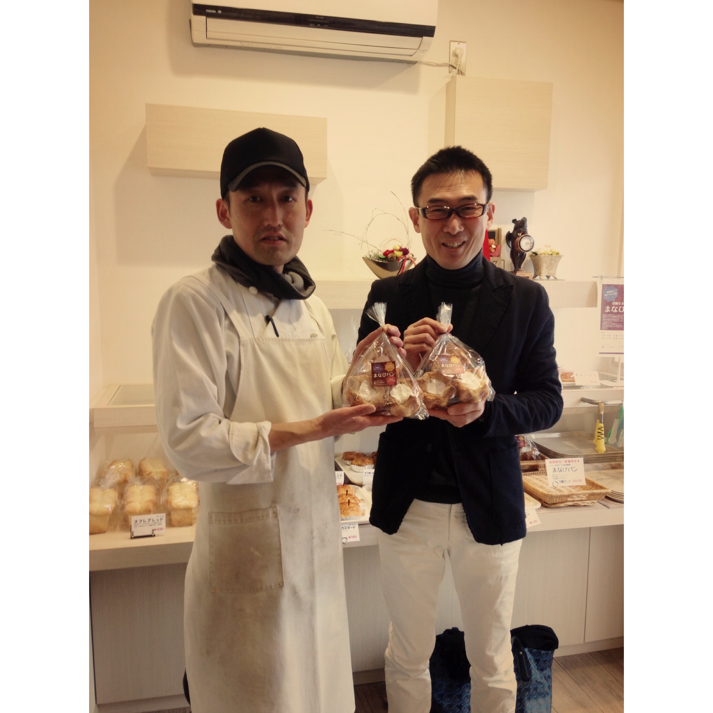 発売初日の本日は少しの時間でしたが、私も店頭に立たせていただきました。「まきのぱん」さんに来られたお客様に「まなびパン」を宣伝。買っていただきました。この瞬間は嬉しかったですね。