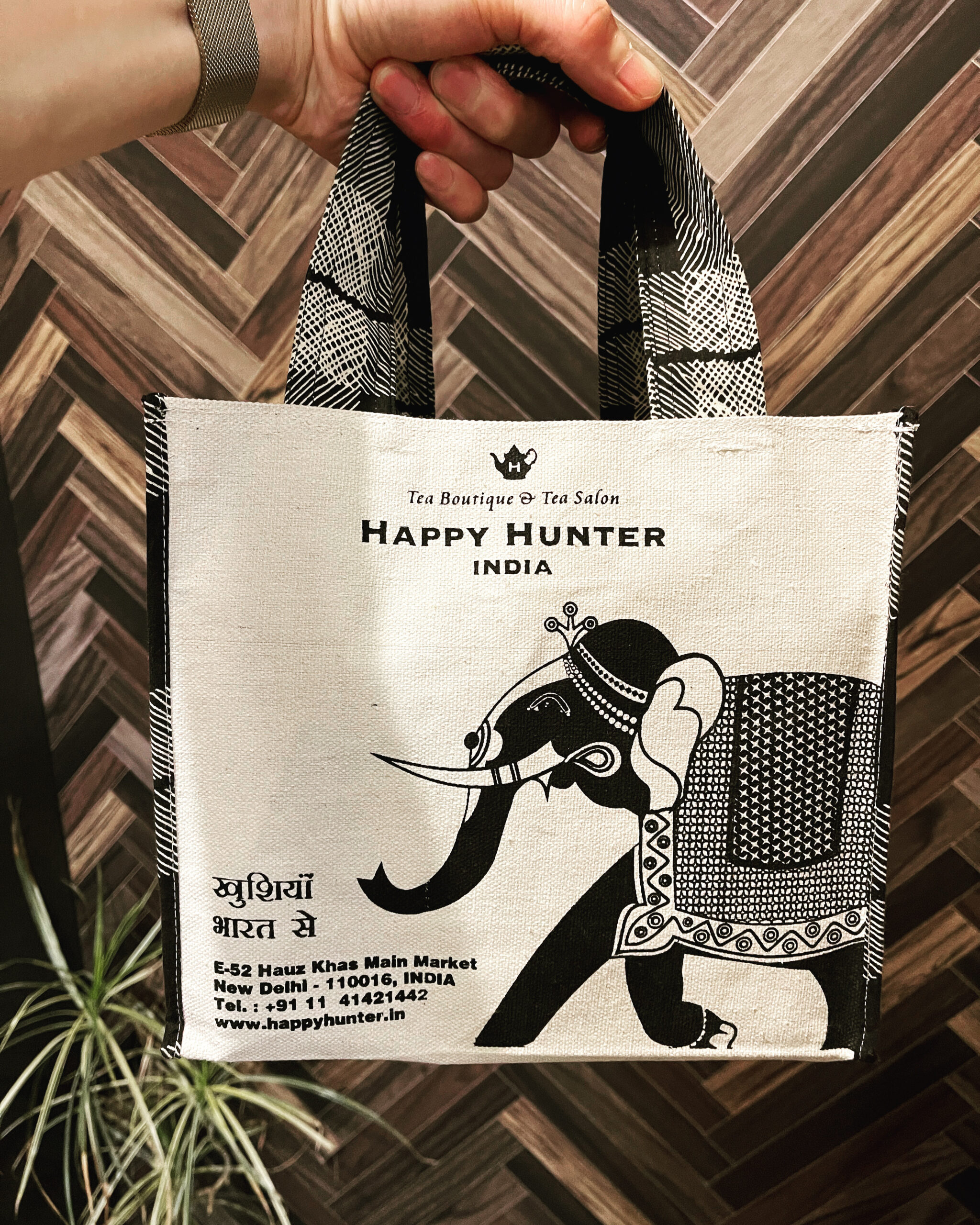 先日受験生からお土産を戴きました。お土産とは、神々しいゾウが描かれたトートバッグ(中にインドのお菓子と紅茶)。トートバッグは20センチ四方のミニサイズですが、ゾウの絵に神々しさがあり、目を引きます。
