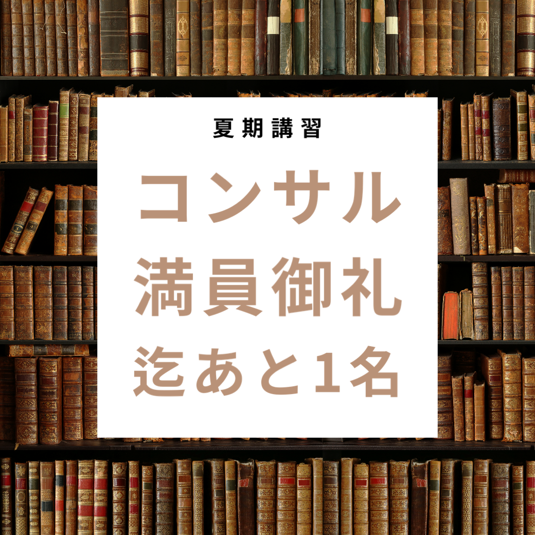 私たちの夏期講習:受験コンサルティングへのご参加ありがとうございます。おかげさまで、今年のコースはほぼ満員に近づいております。現在、あと一名さまの参加を待っています。