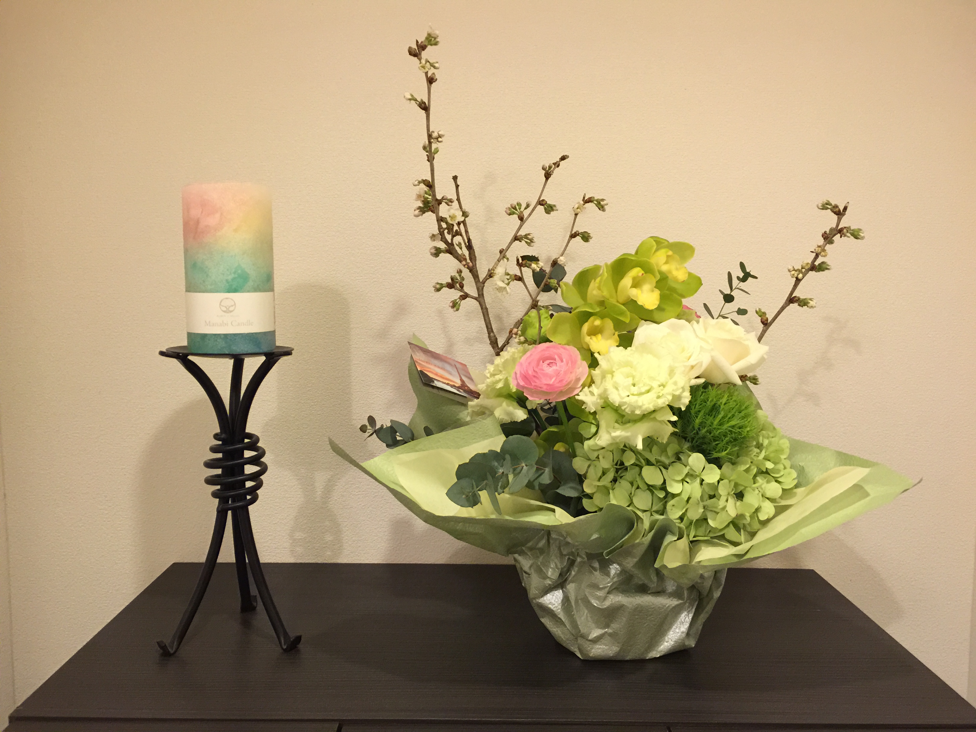 今春、浜松西高中等部に合格されたご家庭からお花をいただきました。これからも受験生たちが合格するようにと、願いを込めて、春に咲く桜をひき立たせた特別なフラワーアレンジメントです。馥郁たる桜の香りがとても素敵ですが、込められた意味に大きな価値を感じずにはいられません。