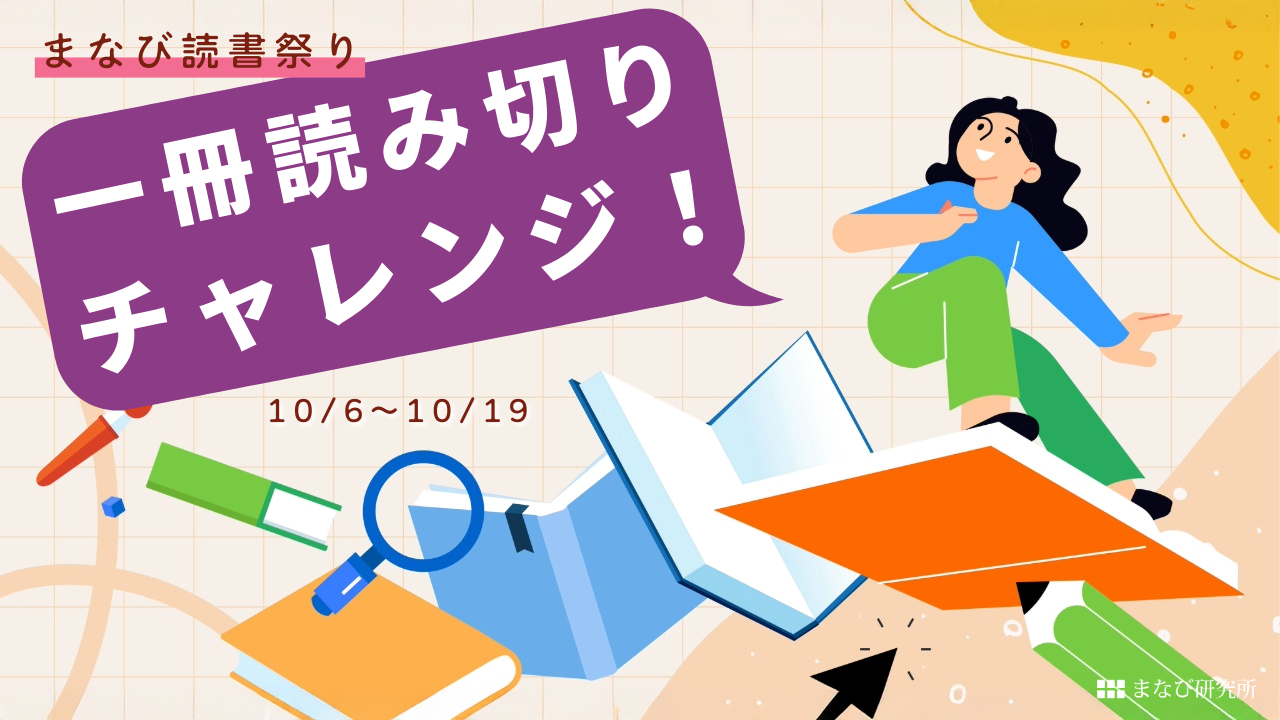 まなび研究所では、毎年10月に「まなび読書祭り」というイベントを開いています。その中心企画が、「一冊読み切りチャレンジ!」。ルールはとても簡単です。あなたがずっと気になっていた、あの「読みかけの一冊」を、みんなで一緒に読み切りましょう、というものです。