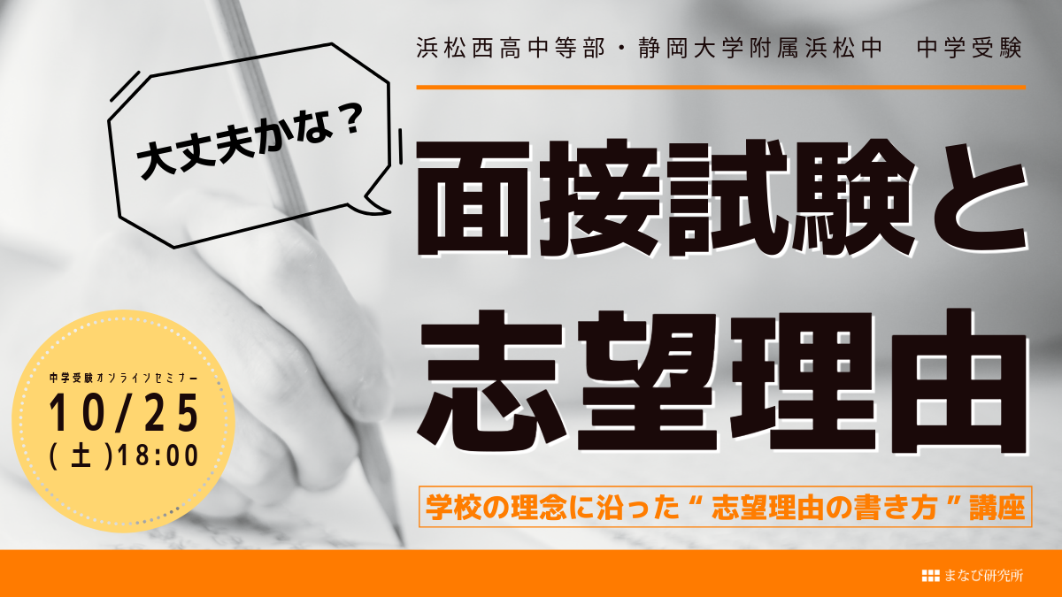 10月中学受験オンラインセミナー【浜松西高中等部・静岡大学附属浜松中】面接試験と志望理由