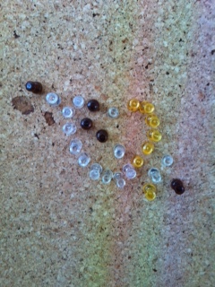 まなび研究所にも誰が何のために描いているのかわからないアートがある。それは塾の二階と三階にある掲示用のコルクボードに見つけることができる。このアートの特長は画びょうだ。余った画びょうを使って、線画のようにコルクボード上に作られている。さらに驚くことにこのアートはよく作りかえられる。気が付くと、作品が作りかえられていて、今まで、マークやアルファベット、メッセージ、グラデーションと作られてきた種類は豊富だ。一体、誰が何のために作っているのか?生徒達に尋ねればすぐ判ることではあるが、私自身がこのアートに興味があり、楽しませてもらっているので、誰にも声をかけず今日まで来た。