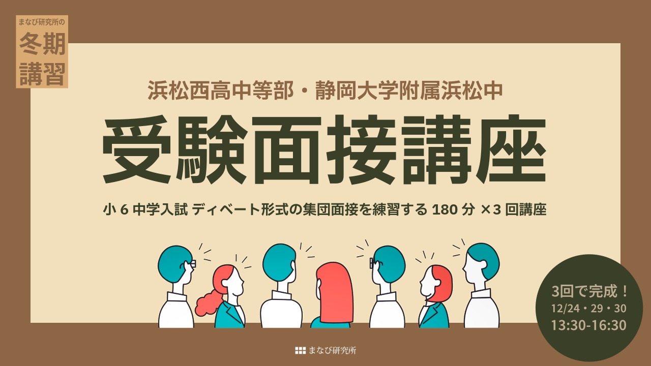 浜松西高中等部や静岡大学附属浜松中の入試。ペーパーテストを乗り越えた先にある、「面接」という関門。特に、6人から8人ほどで行われる「ディベート形式(問題解決型)」の集団面接と聞くと、親御さんの胸は、きっと静かにざわめいていることでしょう。