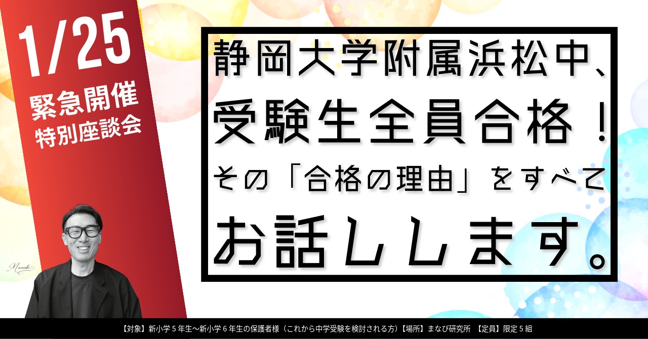 【1/25緊急開催】静岡大学附属浜松中、受験者全員合格!その「合格の理由」をすべてお話しします。