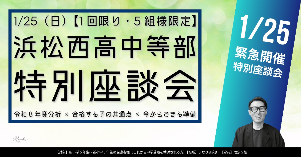 1/25(日)【1回限り・5組様限定】浜松西高中等部 特別座談会──令和8年度分析 × 合格する子の共通点 × 今からできる準備