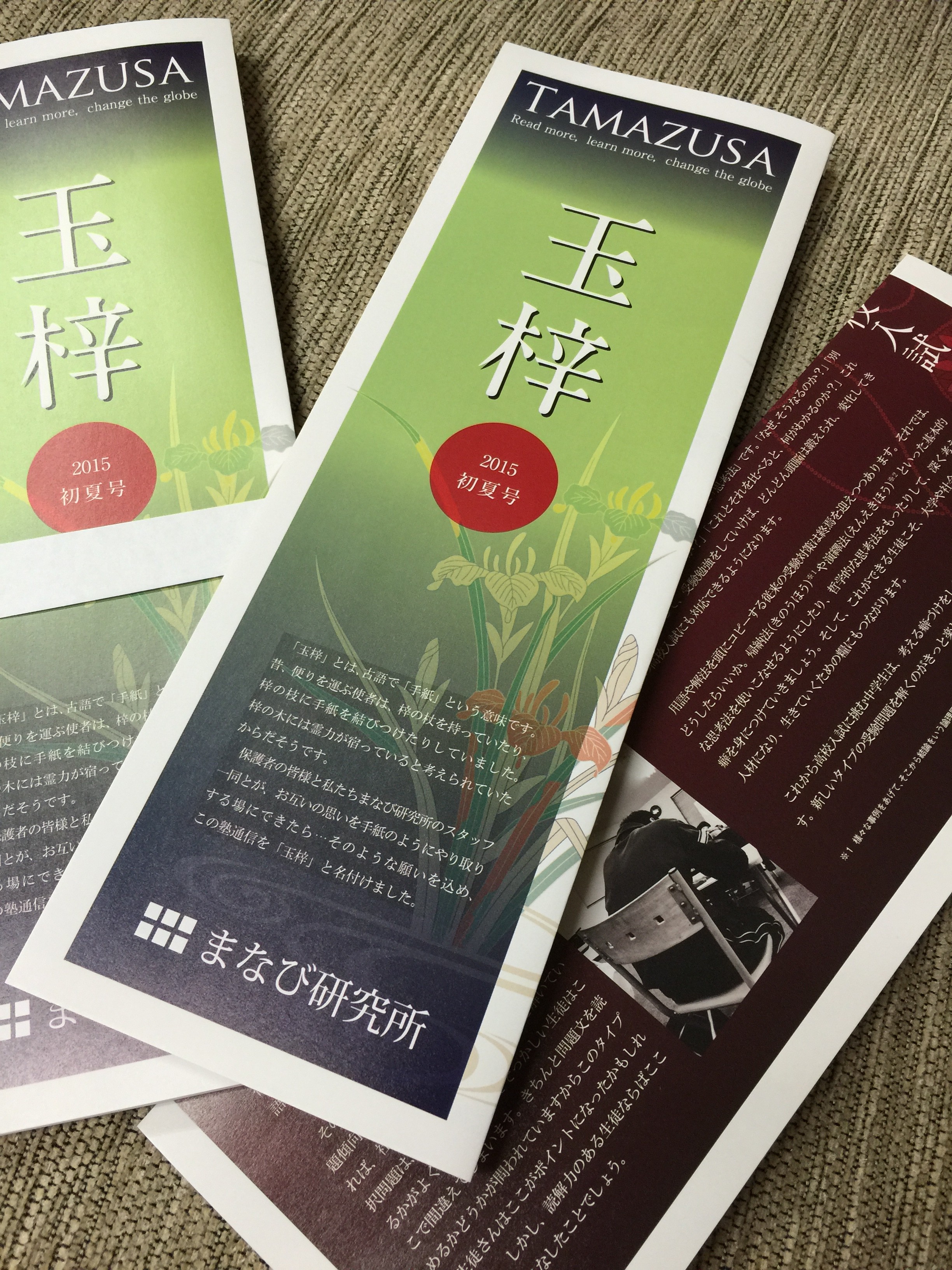 玉梓(たまずさ)の2015年初夏号が出来上がりました。本日より配布開始です。コンテンツはもちろんのこと、デザインも楽しんでくださいね。