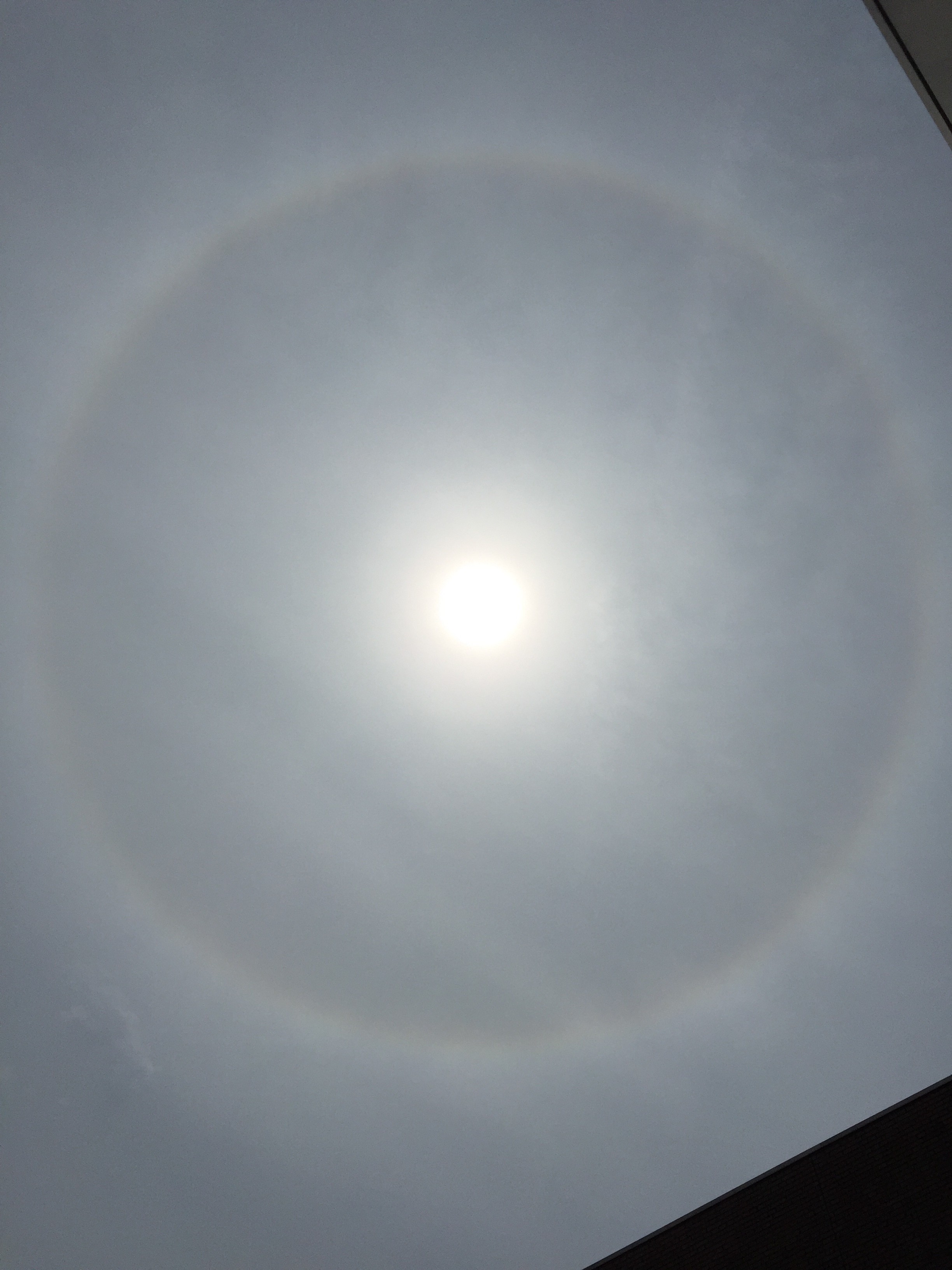 梅雨の晴れ間に見えた日暈、今から今夜の授業に向けて気分が上がります!