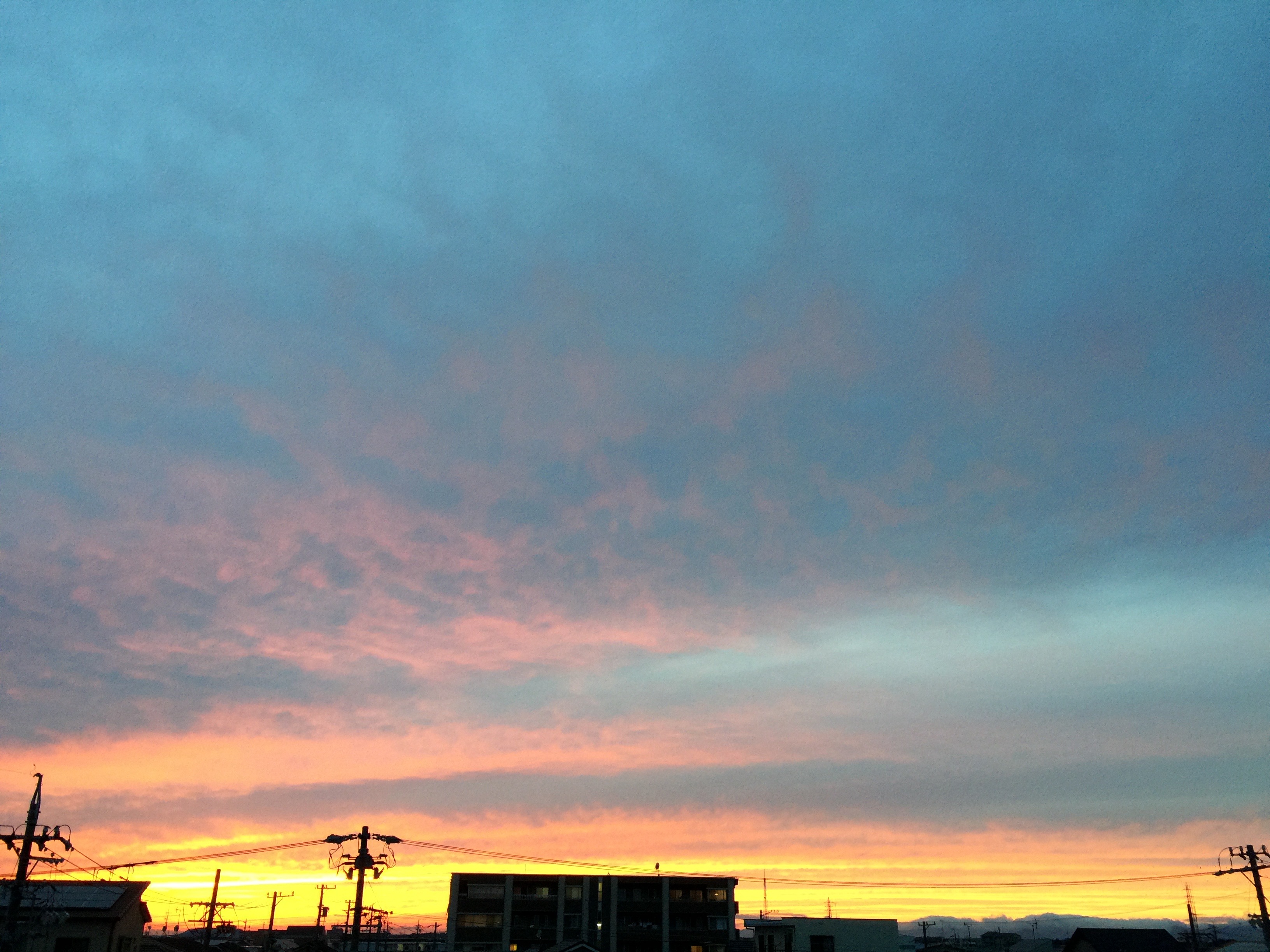 秋冷えた雨の香りが漂う夕陽。雲が陽を受け、桃色に輝いていました。授業が始まる前に見せてくれた幻想的な輝き。キレイでしたね。