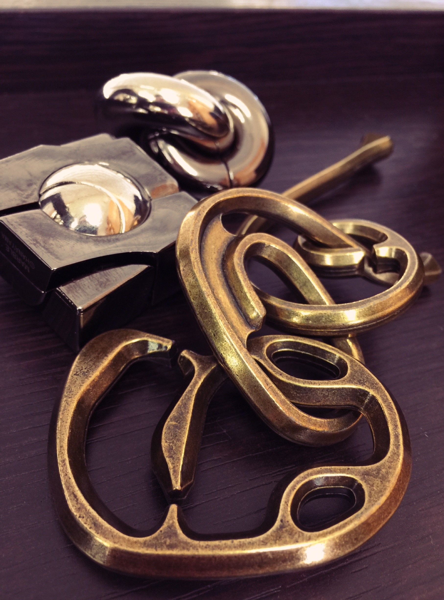 先日、そんな人気のあるキャストパズルに新しい仲間を加えました。紹介すると「ドーナツ」「マーブル」「エニグマ」の三種類。これらのパズルは動きをよく観察し、試行錯誤を繰り返しているとようやく外れます。まだ外せていないものもありますが、仮説を立てながら動かす醍醐味が算数脳を鍛えてくれる所以なのでしょうね。ついつい時間を忘れて遊んでしまいます。それだけに、外せたときの喜びはひとしおです。