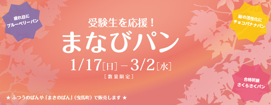 まなびパンを食べて、まなび研究所の生徒はもちろんのこと、浜松地域の受験生がもうひと頑張りして、志望校に合格できるよう応援しています。