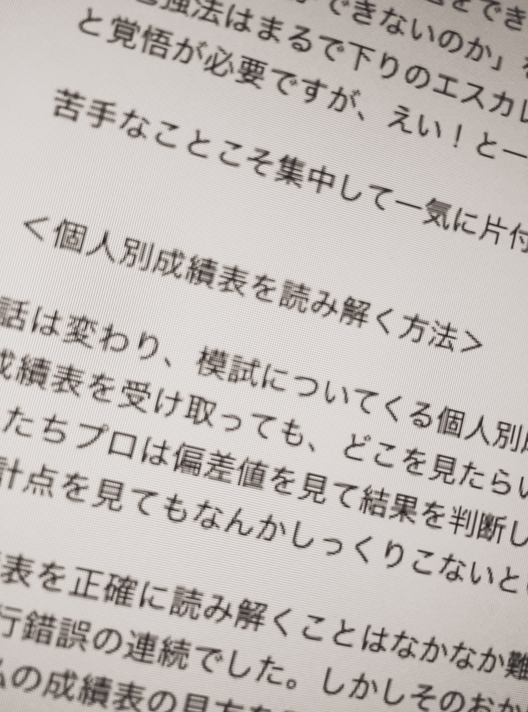 中学生は3022文字、小学生は3044文字の分量で模試から成績を上げる方法について存分に語っていますので、今後の受験勉強の参考にしてください。