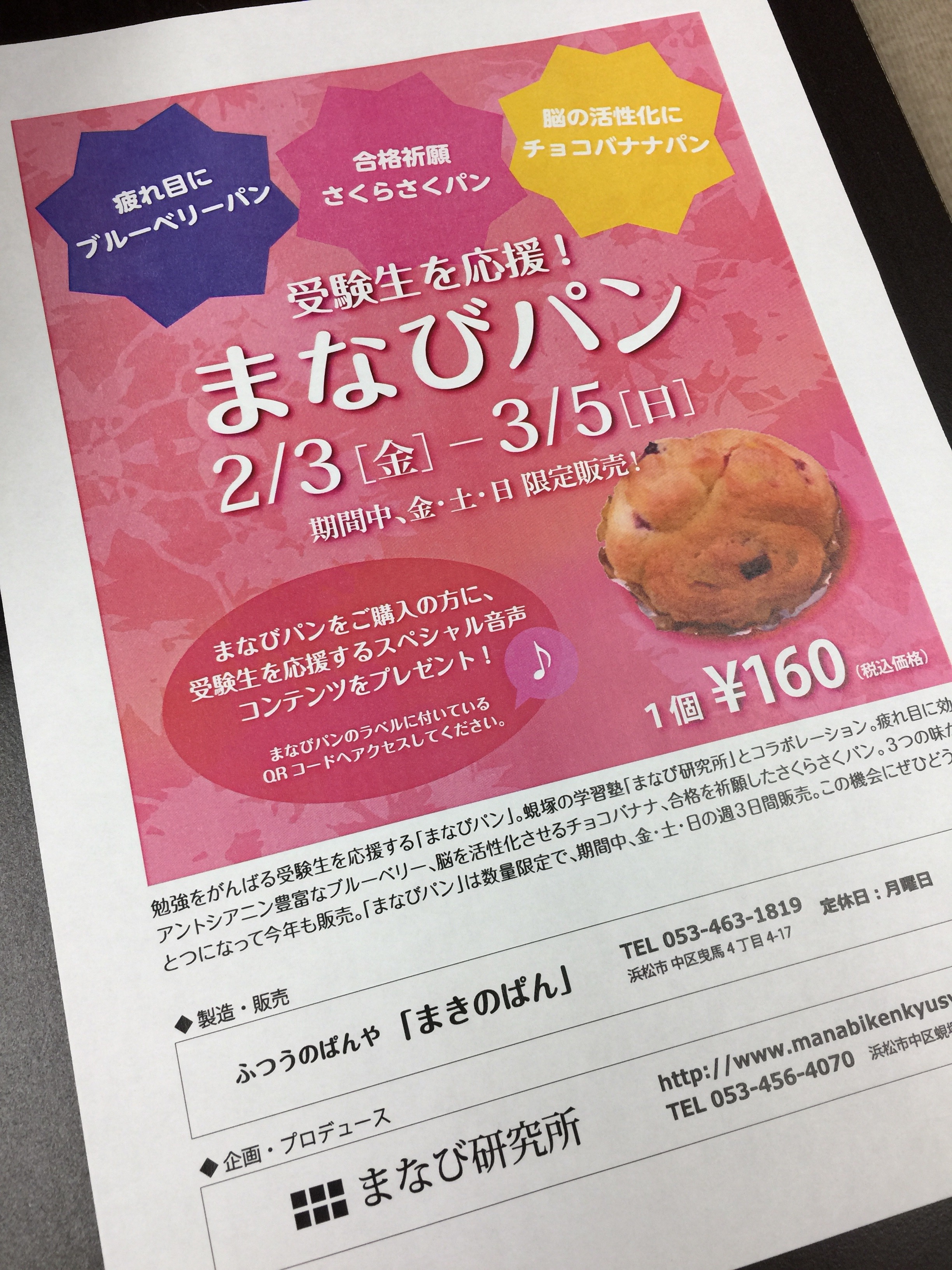 中3受験生を応援「まなびパン」(^.^)/~~~